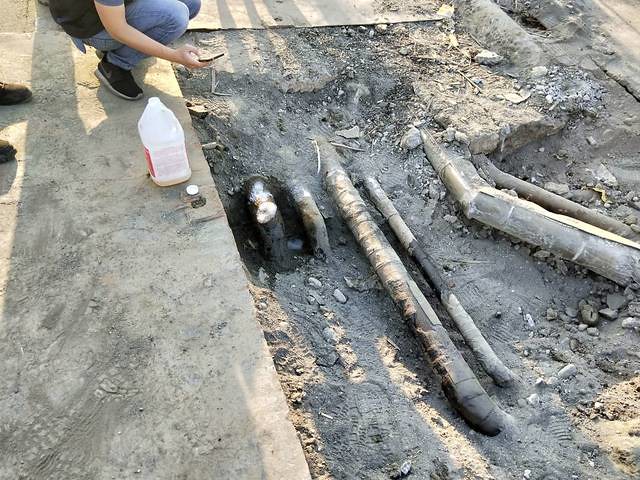 管線破裂位置。照片為蘋果日報翻攝畫面。