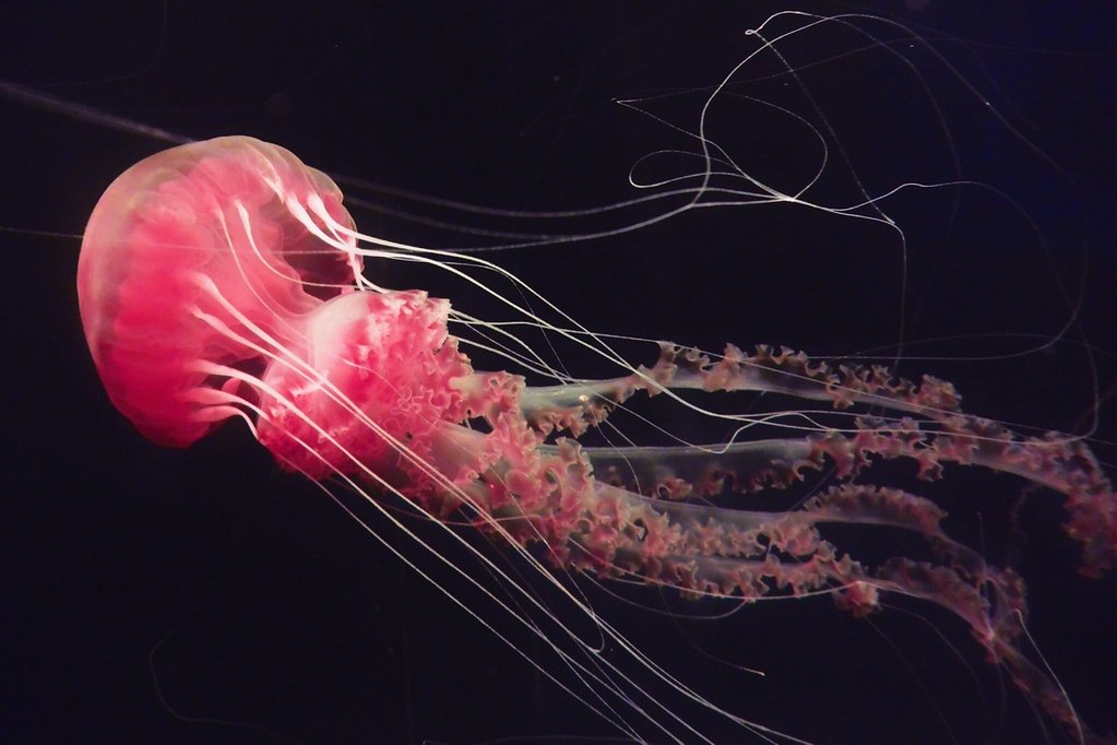 屏東海生館最近成功復育罕見的大型水母─黑海刺水母,這款水母帶著飄逸而細長的觸鬚,頂著粉嫩紅色的碩大泳鐘,宛如海洋中奼紫嫣紅的大紅牡丹,一登場便吸引眾人目光。