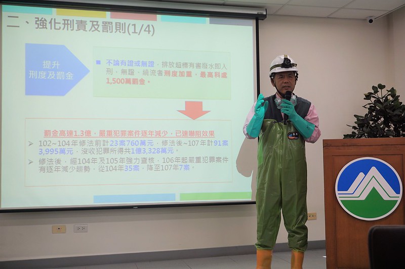 水保處長顏旭明,說明水污法執法成效。環保署提供。