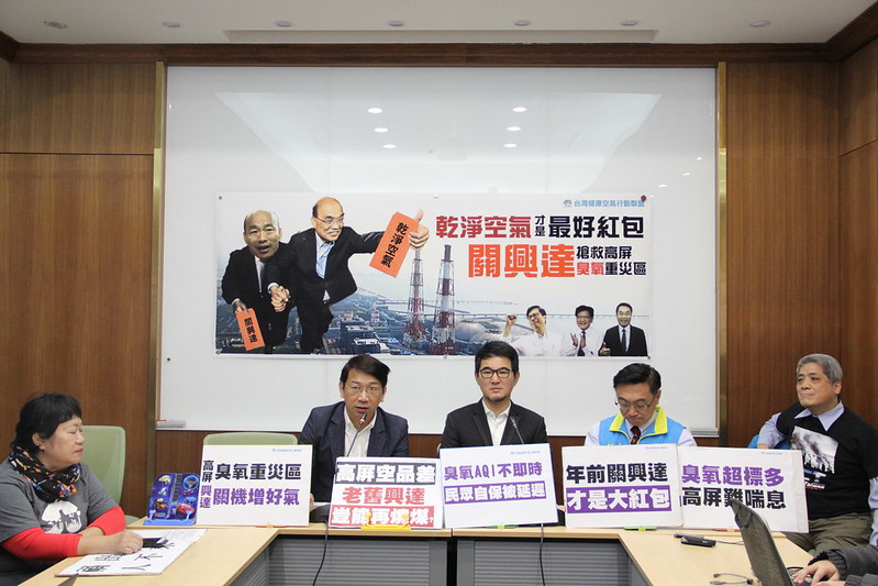 台健空盟理事長葉光芃表示,2018年臭氧最嚴重的依序為林園、潮州、新店、左營和古亭,以林園來看,可能和石化工業有關,且會造成臭氧的污染源如煉油廠、燃煤電廠、燃氣電廠高雄都有,其中新店、古亭雖然PM2.5、PM10較低,但這3年臭氧都很嚴重,相關單位都必須好好說明。