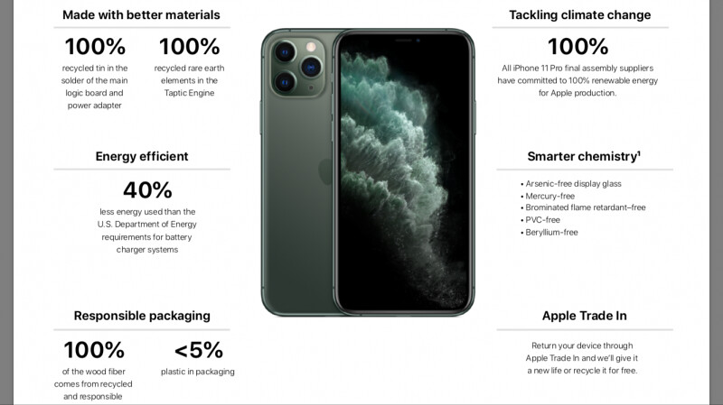 蘋果10日同步公佈iPhone11新機組裝100%使用綠能。(取自蘋果報告)